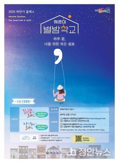 정안뉴스 황정혜 기자 | 해운대구는 직장인과 청년층이 퇴근길에 평생학습을 즐길 수 있도록 10월 13일~11월 28일‘해운대 별밤학교’를 운영한다.