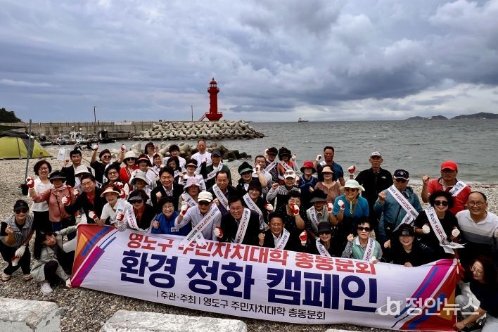 정안뉴스 황정혜 기자 | 영도구 주민자치대학 총동문회(회장 구자구)는 지난 9월 20일 회원 50여 명이 참여한 가운데 중리해변 일대에서 환경정화 활동을 펼쳤다.
