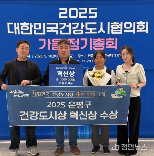 정안뉴스 안정주 기자 | 서울 은평구는 지난 18일 안동에서 열린 ‘2025 제10회 대한민국 건강도시상 공모전’에서 혁신상을 받았다고 밝혔다.