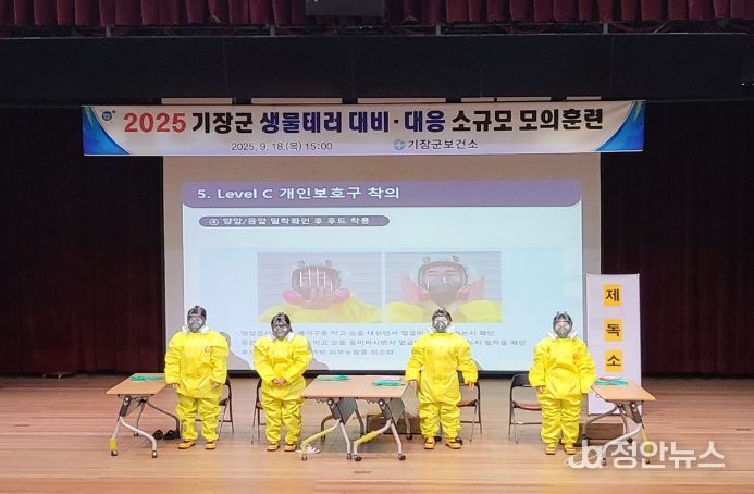 정안뉴스 황정혜 기자 | 기장군은 최근 기장군청 차성아트홀에서 전국(장애인)체육대회를 앞두고 ‘생물테러 대비·대응 모의훈련’을 성황리에 마쳤다고 23일 밝혔다.