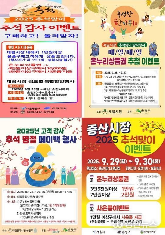 정안뉴스 안정주 기자 | 서울 은평구는 오는 25일부터 내달 13일까지 관내 전통시장에서 다양한 추석 명절 이벤트를 진행한다고 밝혔다.