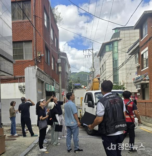 정안뉴스 안정주 기자 | 서울 도봉구가 지난 9월 18일 관계기관과 함께 방학동 도깨비시장 서측 주택가의 공중선 정비 상태를 점검했다.