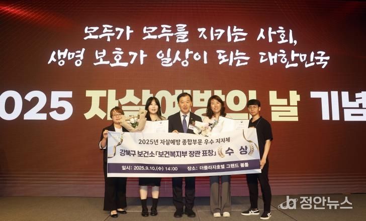 정안뉴스 안정주 기자 | 서울 강북구는 지난 10일 보건복지부가 주관한 ‘2025년 자살예방의 날 기념식’에서 보건복지부 장관 표창을 수상했다고 밝혔다.