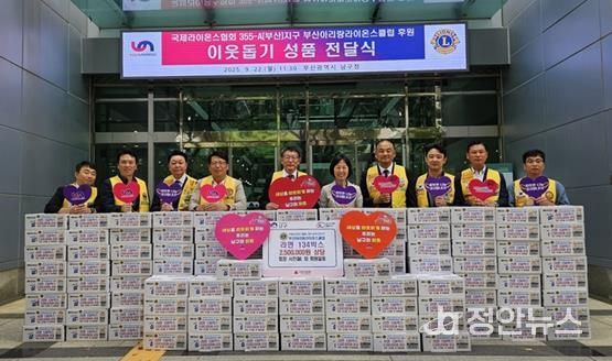 정안뉴스 황정혜 기자 | 부산아리랑라이온스클럽은 지난 22일 부산 남구에 관내 저소득층을 위해 라면 134박스를 전달했다.