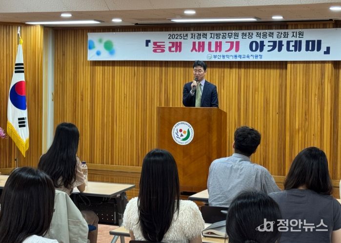 정안뉴스 황정혜 기자 | 부산광역시동래교육지원청 23일 청사 내 대회의실에서 저경력 지방공무원을 대상으로 ‘동래 새내기 아카데미’의 마지막 과정인 영화인문학 힐링 연수를 실시했다.