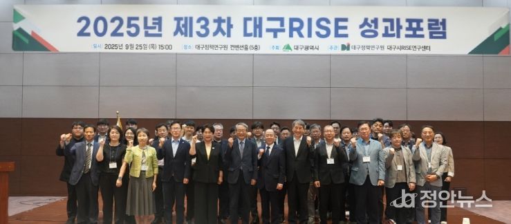 정안뉴스 안정주 기자 | 대구광역시와 대구 RISE연구센터는 9월 25일 오후 3시, 대구정책연구원 컨벤션홀에서 ‘2025년 제3차 대구 RISE 성과포럼’을 개최했다.