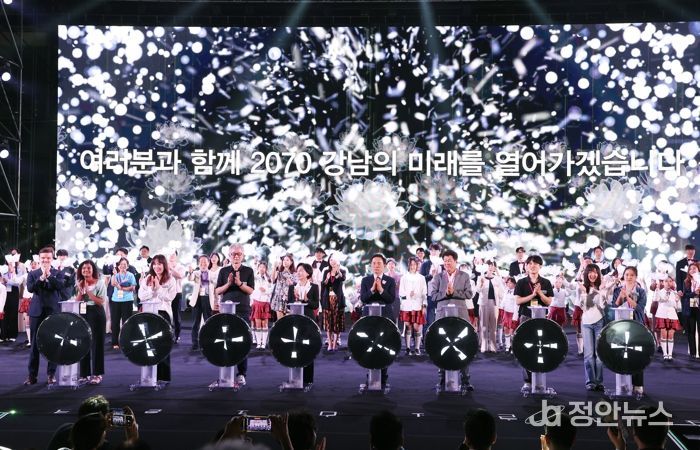 정안뉴스 안정주 기자 | 조성명 강남구청장이 26일 코엑스 동측광장 특설무대에서 열린 개청 50주년 기념 강남페스티벌 개막식에서 ‘2070 강남 비전’을 발표했다.
