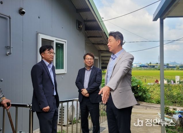 이날 현장에는 김동구 의원, 김형우 전북특별자치도 건설교통국장이 함께해 거주자의 애로사항을 청취하고, 생필품이 담긴 ‘선물꾸러미’를 전달했다.