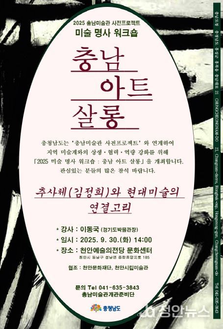 정안뉴스 황도연 기자 | 충남도는 30일 천안예술의전당 문화센터에서 ‘2025 미술 명사 워크숍(충남 아트 살롱)’ 2회차 행사를 개최했다.