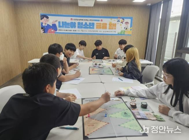 정안뉴스 황도연 기자 | 재단법인 당진시청소년재단 당진청소년카페 수다벅스 2호점에서 지난 9월 27일 관내 초·중학교 청소년 12명을 대상으로 올바른 생활 습관 및 경제 관념을 길러주는'경제교실Ⅱ- 나는야 청소년 금융 왕!'프로그램을 운영했다.