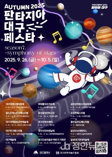 주요 공연으로는 토요시민콘서트(신천 수변무대), 판타지아대구페스타 가을축제인 ‘2025 대구예술제’(코오롱 야외음악당)와 청년버스킹(동성로 일원) 등 다양한 볼거리가 시민들이 즐겨 찾는 야외 도심 무대에서 열린다.