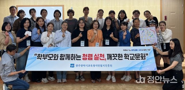 정안뉴스 안정주 기자 | 광주광역시교육청시민협치진흥원은 25~30일 초·중학생 학부모 100여 명과 함께 ‘청렴 캠페인’을 실시했다.
