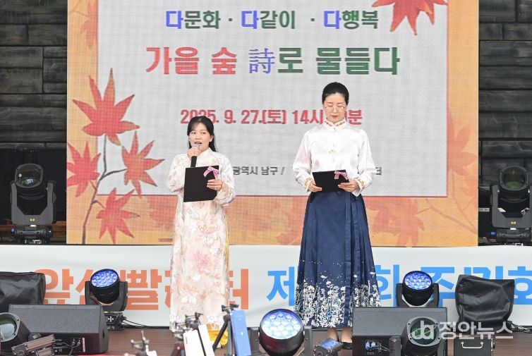 정안뉴스 안정주 기자 | 대구 남구는 깊어 가는 가을을 맞아 지난 27일 앞산빨래터공원에서 「다문화 가족과 함께하는 가을 숲속 詩낭송회」를 개최했다.