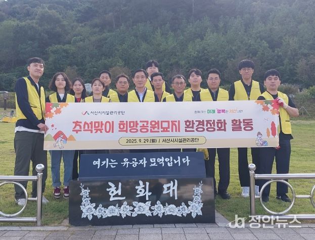 정안뉴스 황도연 기자 | 서산시시설관리공단은 민족 최대 명절 추석을 앞두고 성묘객들에게 깨끗하고 쾌적한 추모 환경을 제공하기 위해 9월 29일 서산시 희망공원묘지에서 환경정화 활동을 실시했다.