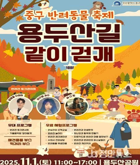 정안뉴스 황정혜 기자 | 부산 중구는 오는 11월 1일 용두산공원 일원에서 첫 반려동물 축제, ‘용두산길 같이걷개’를 개최한다.