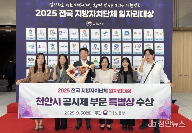 정안뉴스 황도연 기자 | 천안시는 고용노동부 주최 2025 전국 지방자치단체 일자리대상에서 지역일자리 목표 공시제 부문 장관상을 수상했다고 30일 밝혔다.
