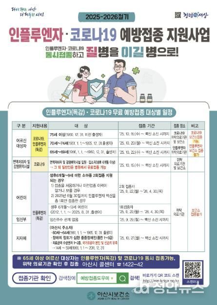 정안뉴스 황도연 기자 | 아산시는 10월 15일부터 내년 4월 30일까지 고위험군을 대상으로 무료 코로나19 예방접종을 시행한다.