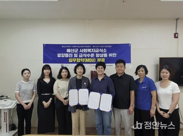 정안뉴스 황도연 기자 | 예산군 어린이·사회복지급식관리지원센터는 예산군 장기요양기관연합회와 관내 어르신의 건강 및 영양 증진을 위한 업무협약을 체결했다고 1일 밝혔다.