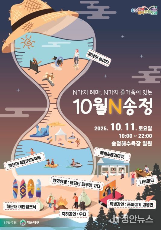 정안뉴스 황정혜 기자 | 해운대구는 10월 11~12일, 해운대·송정해수욕장에서 ‘N가지 테마, N가지 즐거움이 있는 10월N 해운대·송정’을 개최한다.