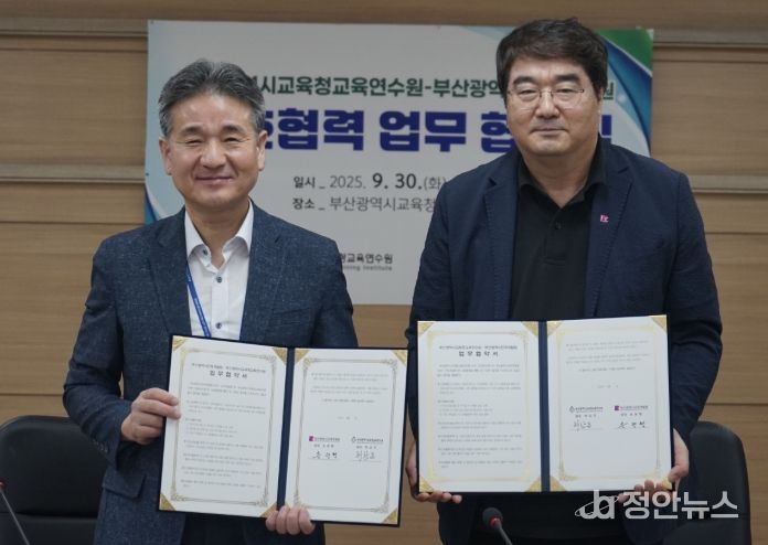 정안뉴스 황정혜 기자 | 부산광역시교육청 교육연수원은 9월 30일 오후 교육연수원에서 부산광역시인재개발원과 부산광역시 연수교육 발전을 위한 업무협약을 체결했다고 1일 밝혔다.