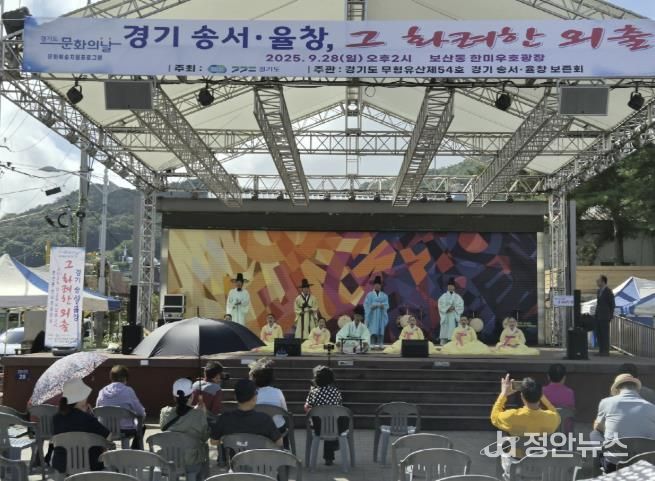 정안뉴스 안정주 기자 | 동두천시는 9월 28일 오후 2시 보산동 한미우호의 광장 야외무대에서 경기도 무형유산 제54호 ‘경기송서(송서·율창)’ 보존회(보유자 이석기, 회장 김춘경)의 2025년 공연 '경기 송서·율창 ‘그 화려한 외출’'이 성황리에 열렸다고 밝혔다.