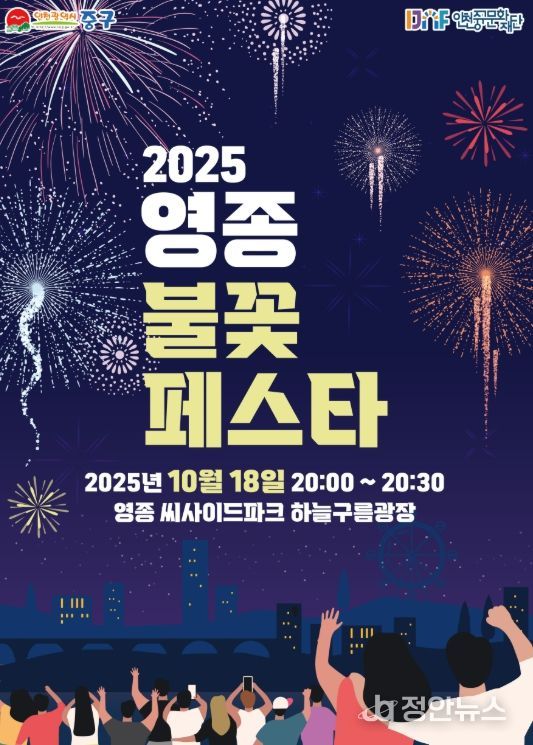 (재)인천중구문화재단은 오는 10월 18일 저녁 8시 영종 씨사이드파크 하늘구름광장에서 ‘2025 영종 불꽃 페스타’를 개최한다고 밝혔다.