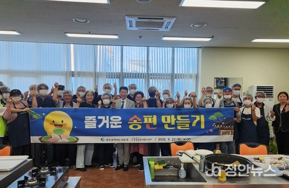 정안뉴스 안정주 기자 | 광주도시공사(사장 김승남)는 지난 23일 북구 남도향토음식박물관에서 주거취약계층 주거상향 지원사업 입주자를 대상으로‘한가위 송편 나눔’행사를 진행했다.