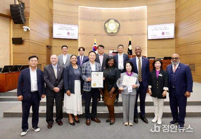 정안뉴스 황도연 기자 | 천안시의회는 지난 9월 25일 오전 10시, 천안흥타령춤축제를 맞아 방문한 미국 PG(Prince George’s) 카운티 대표단을 초청해 환담회를 열었다.
