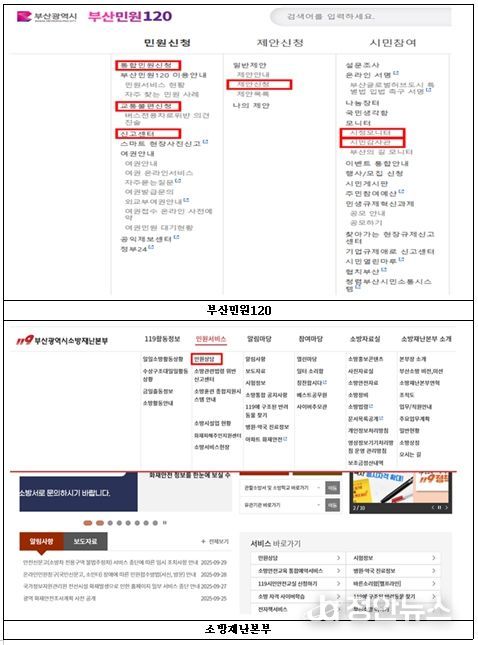 보다 자세한 내용은 각 기관(부산민원120, 소방재난본부, 상수도사업본부) 누리집 공지사항을 통해 확인할 수 있으며, 전화 문의는 시 통합민원과로 하면 된다.