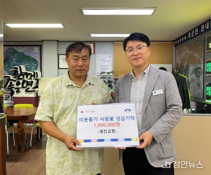 정안뉴스 안정주 기자 | 양평군 개군면은 지난 1일, 개군면 계전 2리에 위치한 계전교회가 추석 명절을 앞두고 지역 내 어려운 이웃을 돕기 위한 성금 100만 원을 기탁했다고 밝혔다.