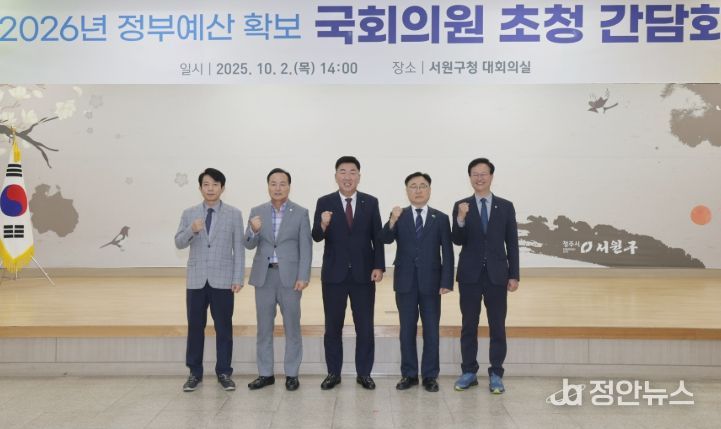 정안뉴스 황은경 기자 | 청주시는 2일 지역 국회의원을 초청해 예산정책간담회를 열고 2026년 국비사업 증액과 제도개선 등 지역 현안을 건의했다.
