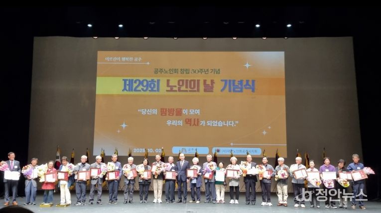 정안뉴스 황도연 기자 | 공주시는 2일 공주문예회관에서 각 기관·단체장과 노인회 회원 등 500여 명이 참석한 가운데 ‘제29회 노인의 날 기념행사’를 개최했다고 밝혔다.