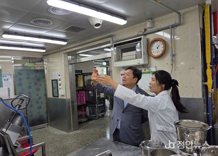 김호겸 의원은 “소규모 인원으로 4개 학교 급식 조리를 맡아서 고생하고 있는 영양교사 및 조리실무사들의 노고에 감사한다”라고 하면서 급식 조리실 환기설비 개선 현황을 자세하게 점검했습니다.