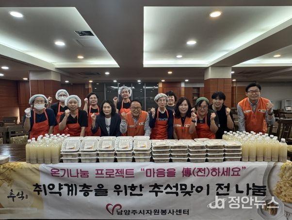 정안뉴스 안정주 기자 | 남양주시자원봉사센터는 추석맞이 집중 주간을 맞이하여 9월 25일부터 오는 10월 3일까지 약 1,300명의 관내 취약계층을 대상으로 ‘추석맞이 전 나눔 활동’을 펼쳤다.