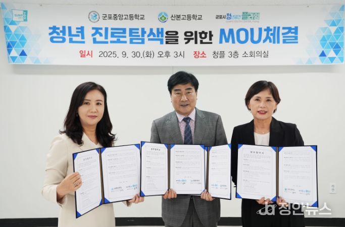 정안뉴스 안정주 기자 | 군포시 청년공간플라잉(센터장 조남)은 지난 9월 30일 군포중앙고(교장 이은경), 산본고(교장 김은정)와 함께 2025 창업스쿨 사업 관련 업무협약을 맺었다.