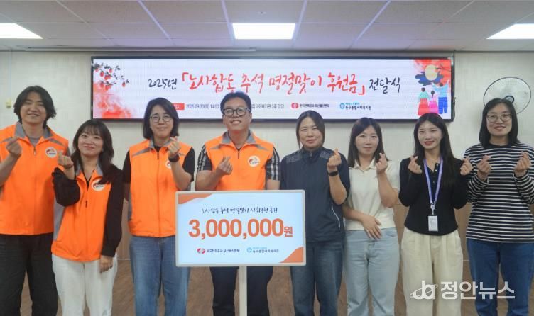 정안뉴스 황정혜 기자 | 부산 동구종합사회복지관은 지난 9월 30일, 추석 명절을 앞두고 한국전력공사 부산울산본부로부터 노사 합동으로 마련한 300만 원의 후원금을 전달받았다고 밝혔다.