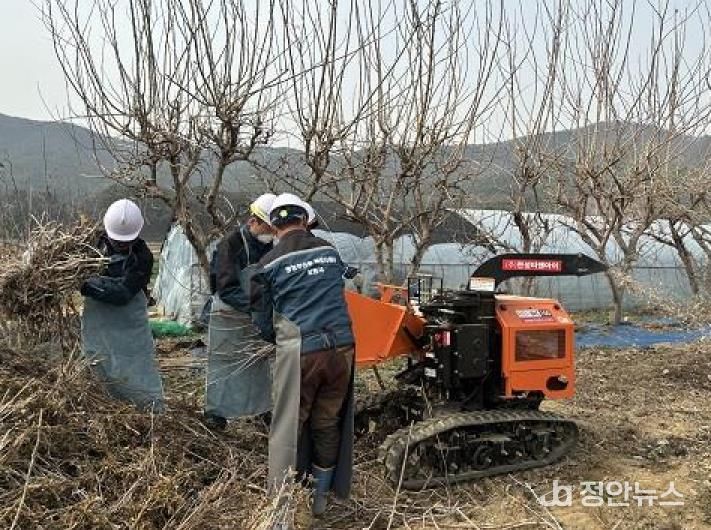 파쇄지원단은 산림 인접 농지와 영농부산물 처리가 어려운 취약계층 농가를 우선 지원하며, 마을을 직접 방문해 과수 잔가지, 고춧대 등의 영농부산물을 수거·파쇄한다.
