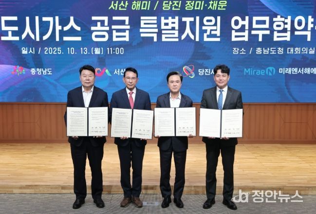 정안뉴스 황도연 기자 | 당진시는 13일 충남도청 대회의실에서 충청남도, 미래앤서해에너지와 함께 도시가스 공급 특별지원 업무협약(MOU)을 체결했다고 밝혔다.
