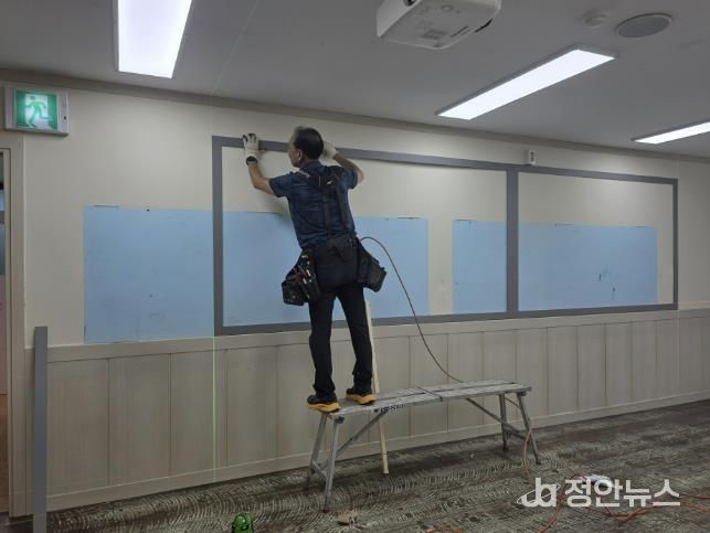 정안뉴스 황도연 기자 | (재)당진시청소년재단 합덕청소년문화의집 방과후아카데미에서 ‘LG이노텍 주니어소나무교실 학습환경개선공사’ 공모사업에 선정되어 노후된 교실에 대한 학습환경 개선공사를 완료했다. 25년 9월 30일부터 10월 13일까지 진행된 이 공사는 청소년들에게 보다 쾌적하고 안전한 학습공간을 제공하기 위해 벽면 및 바닥교체, 전선정리, 출입문 교체, PC교체 등을 중심으로 진행됐다.