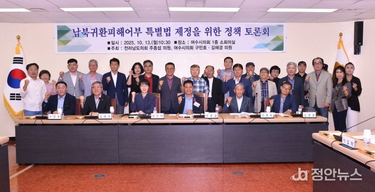 정안뉴스 안정주 기자 | 여수시의회는 지난 10월 13일, 구민호·김채경 여수시의원과 주종섭 전남도의원 공동 주최로 ‘납북귀환피해어부 특별법 제정을 위한 정책토론회’를 개최했다.