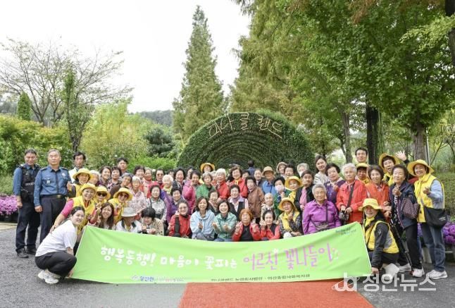 정안뉴스 황도연 기자 | 아산시 영인면 행복키움추진단은 지난 14일 피나클랜드(대표 류일우)의 후원으로 관내 어르신 45명을 모시고 ‘오천만송이 국화 꽃나들이’ 행사를 실시했다.