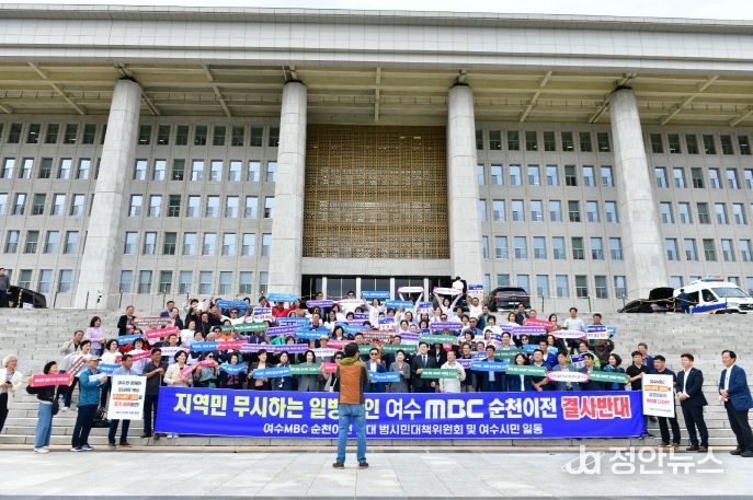 정안뉴스 안정주 기자 | 여수시의회는 10월 14일 MBC본사와 국회에 항의 방문하며 여수MBC 순천 이전 철회를 강력히 촉구했다.