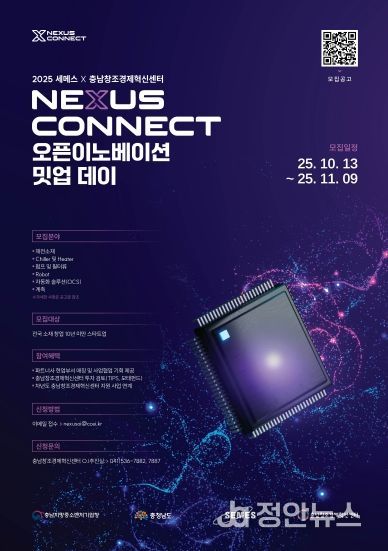 정안뉴스 황도연 기자 | (재)충남창조경제혁신센터와 세메스(주)는 반도체·디스플레이 장비 혁신을 이끌 유망 스타트업을 발굴·육성하기 위해 ‘2025 세메스 × 충남창조경제혁신센터 Nexus Connect 오픈이노베이션 밋업 데이’ 참여 기업을 11월 9일까지 모집한다.
