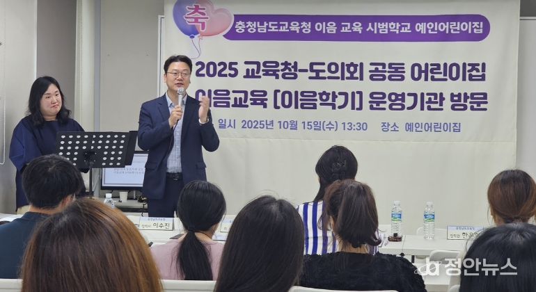 정안뉴스 황도연 기자 | 충남교육청은 15일, 충청남도의회 신한철 의원과 함께 천안시 예인어린이집을 대상으로 어린이집 이음교육(이음학기) 운영 현장을 방문했다.