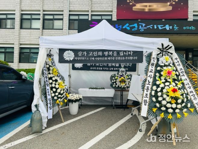 정안뉴스 안정주 기자 | 인천광역시교육청은 인천학산초등학교 특수교사 1주기를 맞아 10월 20일부터 27일까지 본관 앞에 추모 공간을 운영한다.