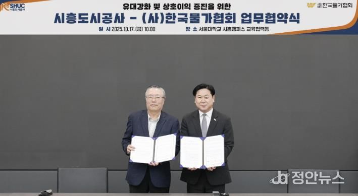 정안뉴스 안정주 기자 | 시흥도시공사는 지난 17일 기획재정부 허가로 설립된 전문가격조사·원가계산용역기관인 한국물가협회와 지역 공공개발사업의 협력을 목표로 하는 업무협약을 체결했다고 밝혔다.