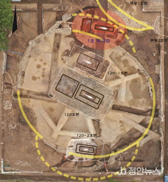 정안뉴스 안정주 기자 | 국가유산청은 경주시와 신라왕경 핵심유적 복원정비사업의 일환으로 추진하고 있는 경주 황남동 120호분 적석목곽분(돌무지 덧널무덤) 밑에서 적석목곽분 이전 시기에 먼저 조성됐던 목곽묘(덧널무덤, 경주 황남동 1호 목곽묘)를 새롭게 확인하고, 그 안에서 사람과 말의 갑옷과 투구 일체, 금동관 일부, 무덤 주인으로 추정되는 남성 장수 인골과 순장된 시종 추정 인골 등을 발굴했다.