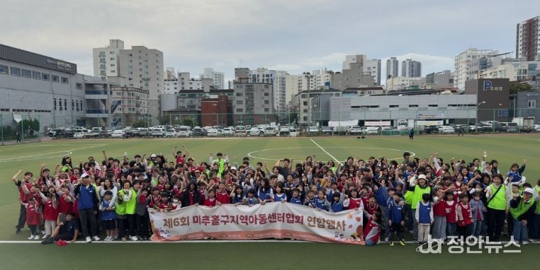 정안뉴스 안정주 기자 | 인천 미추홀구지역아동센터협회(회장 유혜은)는 지난 18일 미추홀구청 축구장에서 관내 14개 지역아동센터 아동 및 종사자 등 400여 명이 참석한 가운데 2025년 미추홀구 지역아동센터 연합 체육대회를 성황리에 개최했다.