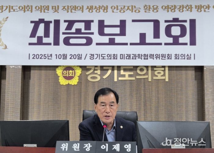 정안뉴스 안정주 기자 | 경기도의회 미래과학협력위원회는 10월 20일, 도의회 위원회 회의실에서 『경기도의회 의원 및 직원의 생성형 인공지능 활용 역량강화 방안 연구』에 대한 최종보고회를 개최했다.