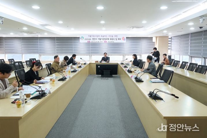 정안뉴스 황도연 기자 | 천안시는 20일 ‘2025년도 천안시 자활기관협의체 위촉식 및 회의’를 열고 지역사회 중심의 자활지원 서비스 체계 확립을 위한 협력체계를 구축했다.
